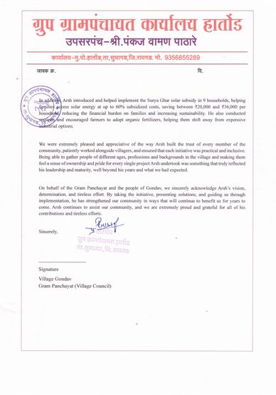 Acknowledged for understanding real challenges and addressing the same by constructing 4 borewells and 1 farm pond along with supporting women with financial literacy sessions. Also, curated guide for relevant government schemes in Marathi.